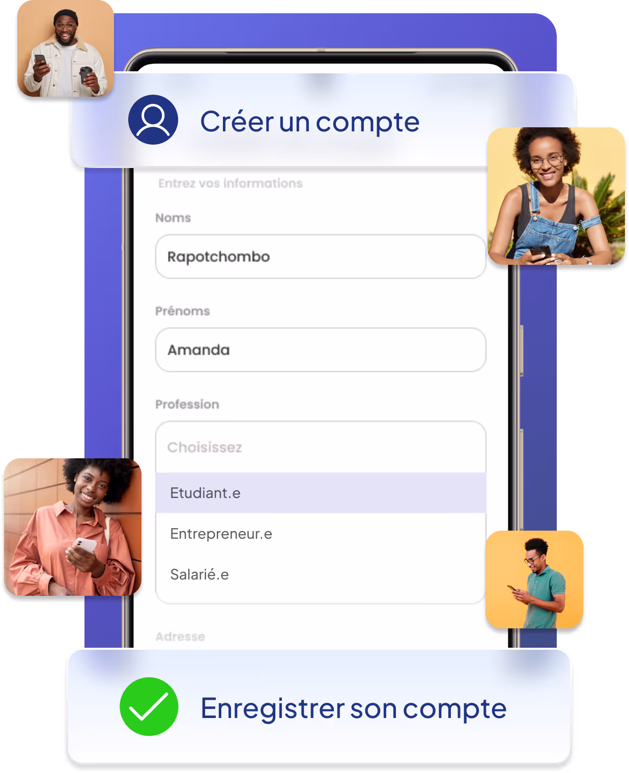 La possibilité de gérer votre argent comme vous le souhaitez, de recevoir votre salaire, votre bourse d’étude, vos règlements clients et d’épargner dans un environnement éthique et hautement sécurisé.